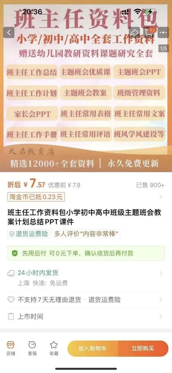 然后我又去淘宝和多多也看了一下,其中有一个店铺,他是把小学、初中、高中所有资料一起打包好了。