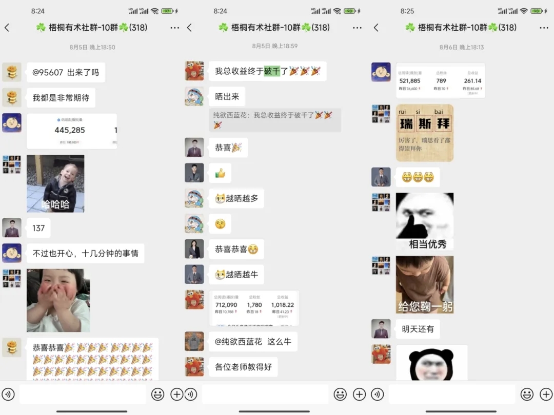 上面讲的这些小伙伴,在进社群之前,其实都是新手小白,这网络是一窍不通的。现在的话一天挣几十块的,也有一天挣上百,几百的,都非常的多。反正一天赚个生活费,是一点问题都没有。而我给他们的建议也是,项目跑通了以后,多去操作两个号,这样收益可以翻倍。在现在这个大环境下,多挣一点才是王道。