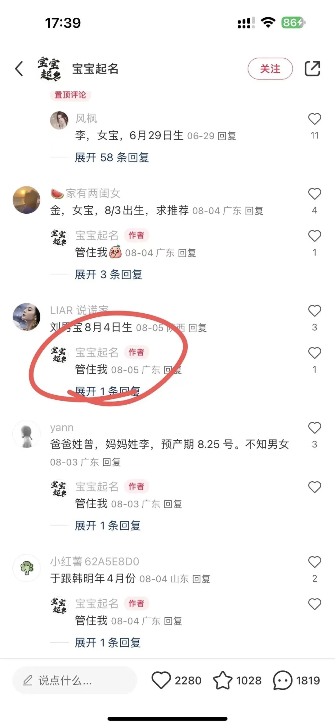 4、当有人在评论区问你:我家宝宝几月几日生,姓刘,起什么名比较好?这个时候,你可以引导他去私信你。