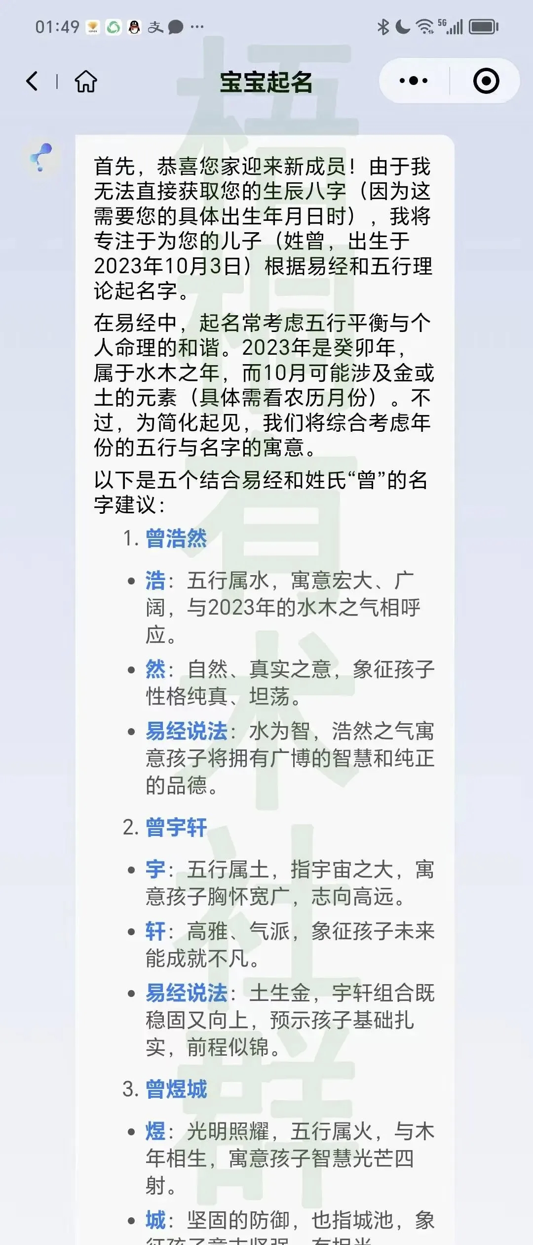 1、在看到今天这篇文章之前,你知道AI可以用来根据八字和性别等因素来起名吗?