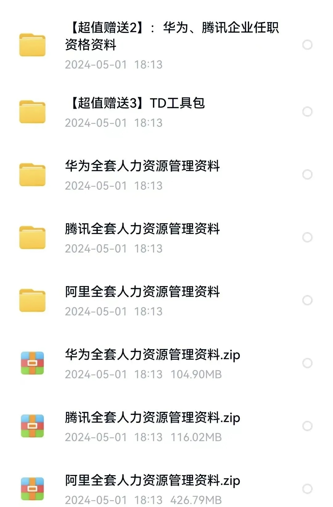 关于HR资料,大家可以到某宝或者某多多上面去买一份,价格也不贵。当然我也收集了一整套HR资料,如果你对这个项目感兴趣的话,可以找我过来领取。